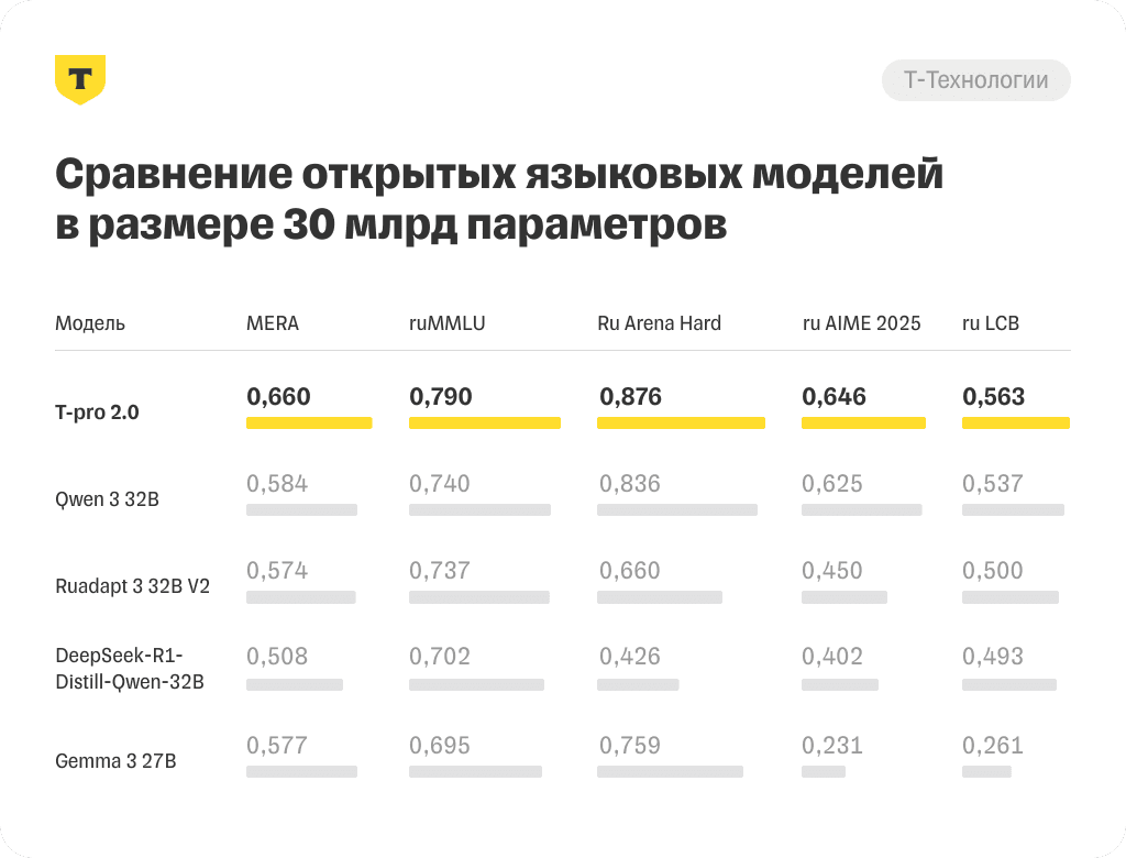 T-Банк выпустил T-Pro 2.0 — открытую LLM с гибридной логикой и экономией ресурсов