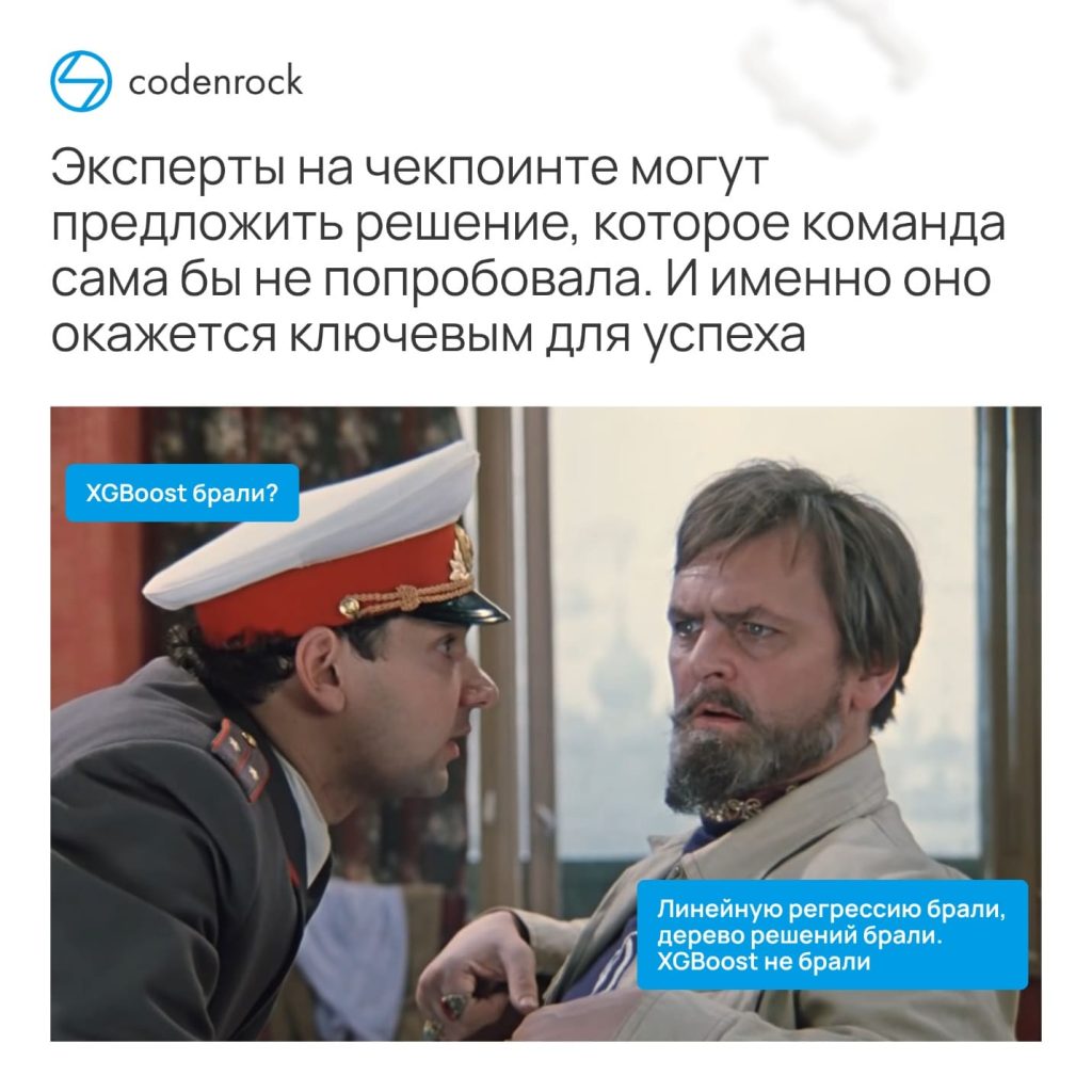 Организаторы не меньше вашего заинтересованы в том, чтобы в финале было много сильных решений, соответствующих всем требованиям. Поэтому цель экспертов на чекпоинте — не раскритиковать ваши наработки, а поделиться своим опытом, который поможет победить.